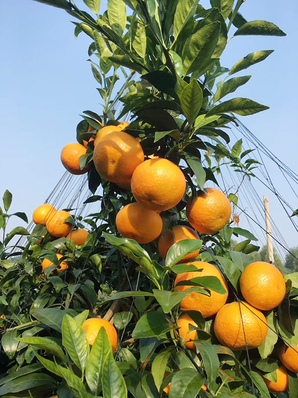 沃柑属于晚熟型的杂交柑橘品种, 此品种具有长势旺盛, 冬季果实落地少, 挂果能力强, 挂果采收期长的特点。从成熟期的1-2月份可以采收上市, 最长可以到5月份之间均可采收。果实饱满外观喜庆, 果肉嫩滑、皮薄、橙色的果肉, 汁多, 所以口感甜柔、低酸爽口, 营养成分很高, 含有大量的维生素。